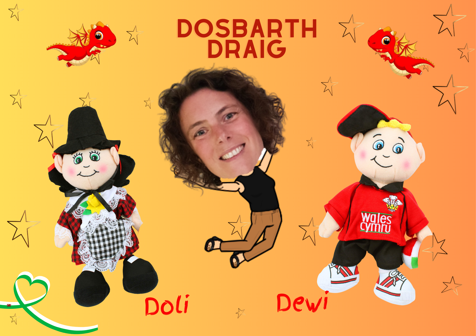 In Dosbarth Draig we have two class mascots Doli and Dewi. Each week during our Seren Yr Wythnos assembly pupils who have tried hard to speak Welsh during the week are awarded by receiving a certificate and taking home one of our mascots.